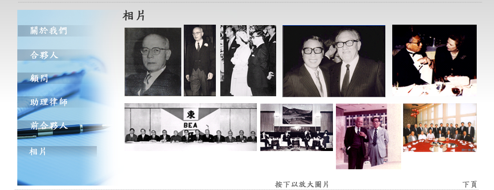 羅文錦爵士 羅文錦爵士 英女皇伊利沙伯二世及簡悅強爵士 亨利基辛格先生及簡悅強爵士 瑪嘉烈戴卓爾夫人及簡悅強爵士 簡悅強爵士於東亞銀行年度會員大會上留影 鄧小平先生及簡悅強爵士 羅文惠太平紳士及簡悅強爵士 李兆基博士與李志華律師及梁雲生律師於午餐聚會上合影